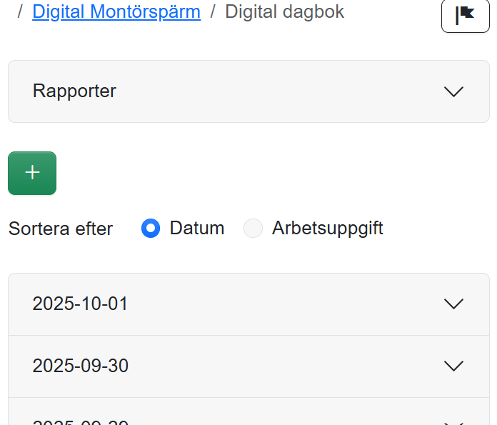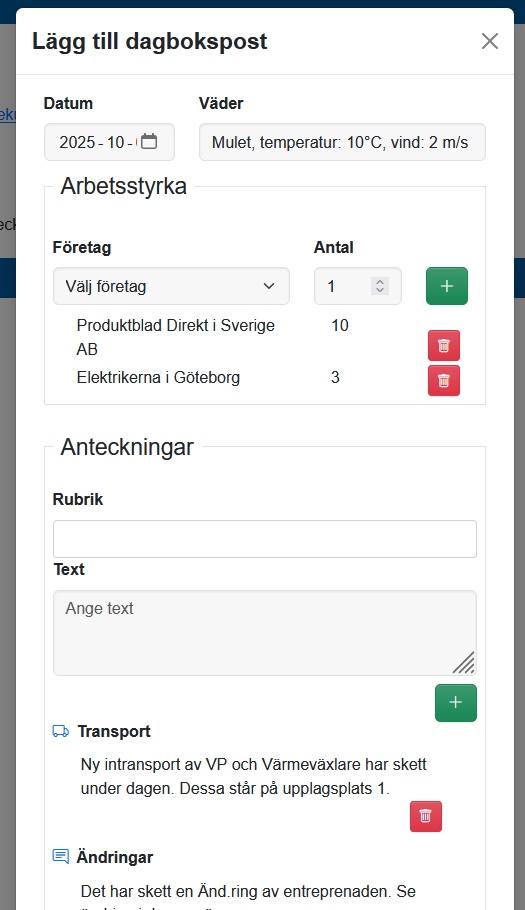I skapad dagbokspost hanterar man sedan arbetmoment den aktuella dagen.