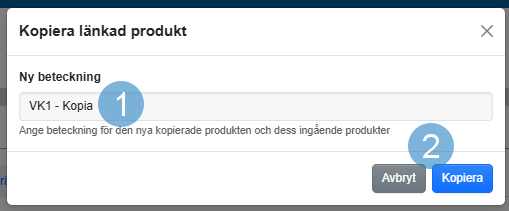 Genom att trycka på Kopiera länkade produkter (nr.2 i bild under “Så fungerar det”) visas en pop-up.